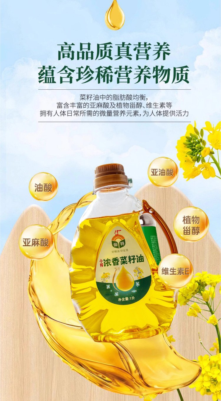 仙特壓榨菜籽油,源自四川綿陽精選優(yōu)質(zhì)非轉(zhuǎn)基因油菜籽,秉承傳統(tǒng)小榨工藝,熱榨濃香,冷榨純香,充分保留了菜籽的營養(yǎng)成分與濃郁香氣。不添加任何化學(xué)溶劑,確保油品健康天然。成品油色澤清亮,適合煎、炒、炸、蒸等多種烹飪方式。